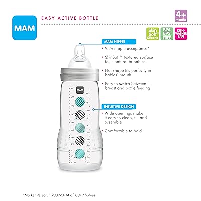 MAM Easy Start Anti-Colic Bottle 11 oz 3-Count Baby Essentials Fast Flow Bottles with Silicone Nipples Unisex Baby Bottles Designs May Vary 49 out of 5 stars 1037 1949 19. 2 X 2pack MAM Easy Active Baby Bottle Fast Flow - 330 Ml Pink 4mths. However the intake in general could range from 450 to 1200ml per day.