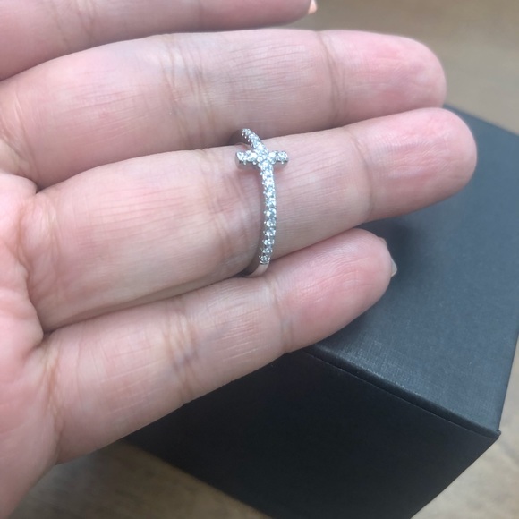 Details for Delicate Silver Criss Cross Couple Rings with CZ Diamonds Collection. Small religious cross ring in sterling silver Excellent condition Flat on the finger turned sideways Size 7 Items 100 or more are shipped in a velvet gift box. Buy it now More payment options.